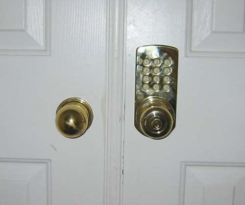 Keypad Door Lock  Since we moved to Livermore, my office is in the house (not in seperate building as in Petaluma), I had to find a solution to keep the kids out of my office. A regular lock wouldn't work since I would always have to have my key. This 'Touchpad Electronic Entry Lockset' by