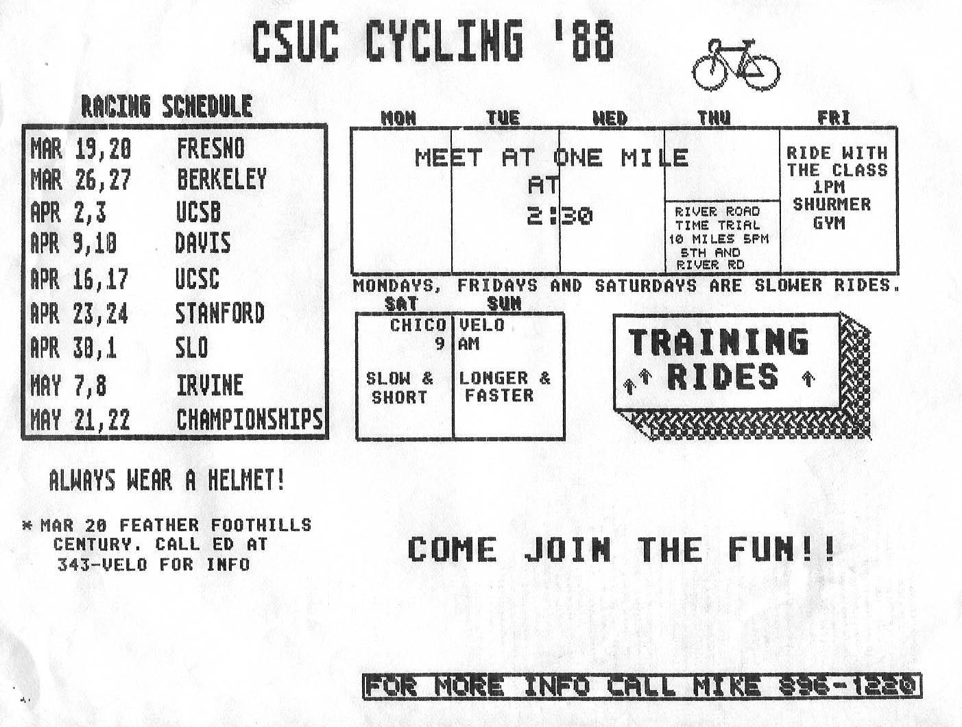 Cycling Team Schedual from 1988